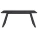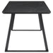 Transform your dining room into a sleek interior with this modern dining table. A bold, matte gunmetal finish defines the hard edges and clean lines of this stellar mid-century modern-inspired dining table. A spacious rectangular top with a rounded bevel edge presents ample seating for six guests. Sled style legs flare outward, creating a dramatic expression. A black China ceramic tabletop with softly rounded corners features an elegant white striation throughout for a classically designed marble-like appearance.