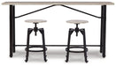 Bring that trendy bar atmosphere home with this dining package. Featuring acacia veneer in a whitewashed finish and a dark metal frame for farmhouse fresh appeal, this set works well against an open wall or floated behind a sofa to make the most of your living space.