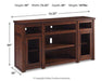 Whether your style is contemporary or more traditional, this TV stand with fireplace insert is beautifully in tune thanks to clean, straightforward lines and a simply striking presence. Its hearty profile is enhanced by rich, earthy mango veneers. What really turns up the heat: an electric infrared fireplace insert with faux firebrick surround that operates with or without infrared heat. With the touch of a button, adjust the temperature and the flame brightness, and set the timer for long-lasting enjoyment.