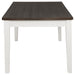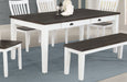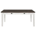 Gather the family around this classic two-tone dining table from the Kingman collection. Espresso finish on the tabletop shows off the wood grain of rich acacia veneer. An antique white finish on the table base adds a charming touch perfect for casual family dining. As much at home in a casual cottage style dining room as in a modern farmhouse theme, this versatile table is sure to find a home in yours. Surround with any combination of side chairs and dining benches to easily accommodate six people at the dinner table.
