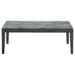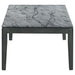 Transform a contemporary space into a minimalist home with this chic modern coffee table. This sophisticated coffee table features a spacious rectangular top that offers a faux grey marble design with realistic-looking striations and a sandy feel. The surface offers ample room for resting a drink, a tray of refreshments, or a tablescape of potted plants and decor. Elegant, slim legs project from aprons, all in a smooth black finish that offers a lovely contrast. Place this coffee table in an industrial style living room to complete a stylish seating arrangement ensemble.
