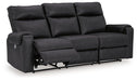 You don’t just want to recline. You want to recline in high design. This power reclining sofa’s clean lines and supple faux leather are out to capture your heart with style and comfort. It gives you the upscale look you want for less—simply take a seat, raise your legs and relax.