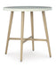 • Table made with aluminum; stone-look top; legs with wood-look painted finish