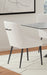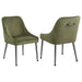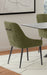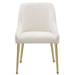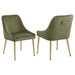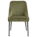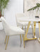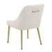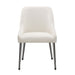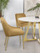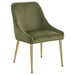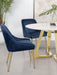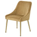 Cradle yourself in the embrace of opulence with this Italian style modern dining side chair, where comfort meets sophistication. Its plated metal legs, tapering into geometric spheres, create a foundation that's as sturdy as it is striking. The seat, a haven of luxury, boasts sloped arms and plush velvet upholstery that beckon you to linger longer after the meal has ended. A purposeful handle on the chair back not only adds to the aesthetic charm but also serves in practical motion, inviting ease with a touch of elegance. This chair is a statement piece, ready to elevate the dining experience and infuse your space with a blend of retro inspiration and contemporary flair.