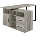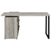 You're bound to win the prize for the most organized workspace with this office desk. Its rustic design is enhanced with a sleek geometric style frame. The open design provides a clean and airy appearance. Five open shelves are perfect for displaying decor. Stylishly organize your belongings within the two built-in drawers with sleek bar pulls.