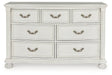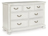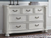 Transform your inner sanctum into a haven of timeless elegance and functionality. This traditionally styled dresser with mirror is adorned in a classic antiqued white finish, highlighted by a serpentine-shaped front with thick decorative moulding. Its drawers are packed with ample storage possibilities. And did we mention the mirror's crowning glory? Talk about relaxed refinement.