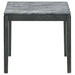 Sleek, clean lines and a minimalist aesthetic come together to create this sophisticated, modern end table. Made with a faux marble top in a grey hue with subtle striations for a natural, realistic effect, this end table offers an understated, contemporary vibe to a space. Across the tabletop is a sandy texture that further pushes the realistic look and feel. The rectangular tabletop rests neatly on a solid base with elegant legs that curve subtly at the top. Contrasting hues create a chic look with a black finished base.
