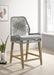 Modern lines convey a contemporary flair in this pair of counter height stools. Breathable and stylish, each counter height stool features a main seat frame wrapped in a woven rope design. Lending a rustic farmhouse flair are weathered Asian hardwood legs, square and slightly tapered toward the foot. The rope-like design also lends a nautical-inspired vibe, perfect for coastal beachside cottages. In addition, each stool features supportive foot braces and a padded seat cushion.