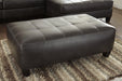 Simply put, this sectional and oversized accent ottoman package is anything but ordinary. Charcoal color faux leather with an embossed natural grain effect and matte finish is inspired by contemporary euro leather. Light gray stitching adds contrast and tufting on the seats puts this set in a league of its own.