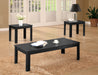 Style a modern room with the clean lines from this three-piece living room set. A sleek black finish creates an elongated effect. Straight legs open up space while adding a layer of sophistication. Decorate a variety of spaces with the coffee table and matching end tables. Great when topped by a lamp or flowers, this set is versatile and classy.